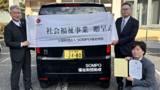 お知らせ 車イス対応車輌を助成いただきました いつもご支援ありがとうございます。センター長の高橋です。本日、SOMPO福祉財団さまの助成により、車イス対応車輌(N-BOXスロープ)を納車いただきました。主に日中一時支援の送迎で活用していく予定ですが、微力ながらも、さらにさまざまな障がい... 2025.12.02 お知らせ