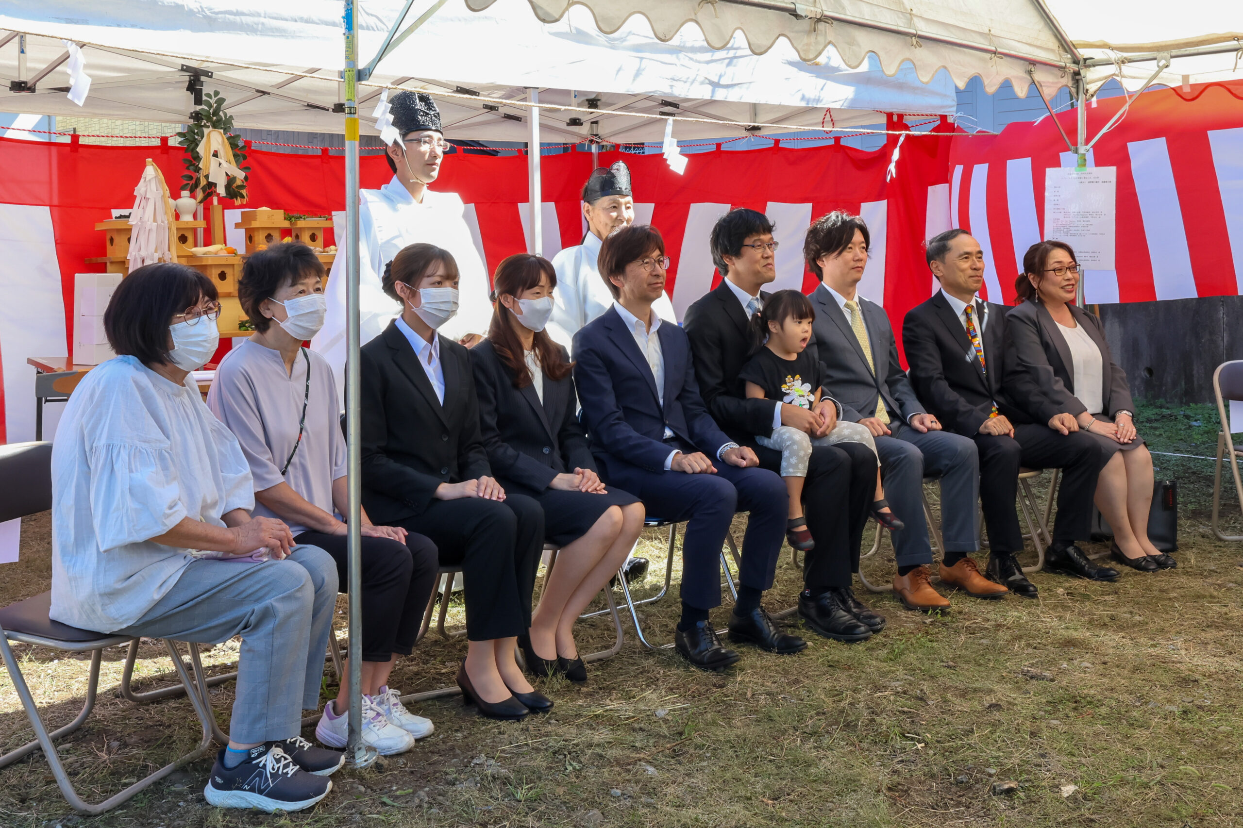 令和7年度社会福祉施設等施設整備費補助事業にて建築するグループホームの起工式を去る9月28日に執り行いました。当日は晴天に恵まれ、遠野八幡宮の宮司さんに祈祷をお願いし、岩手県沿岸広域振興局長並びに釜石市長より祝辞を頂きました。