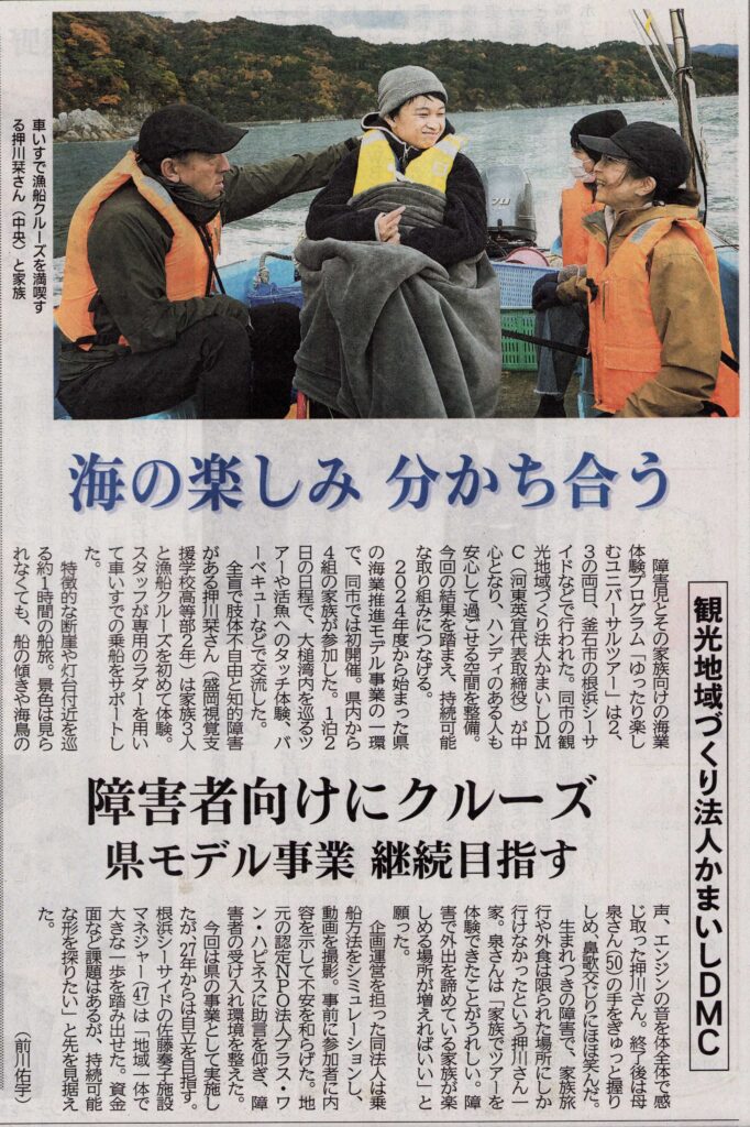 海の楽しみ分かち合う 障害者向けにクルーズ 岩手・釜石市の観光地域づくり法人かまいしDMC