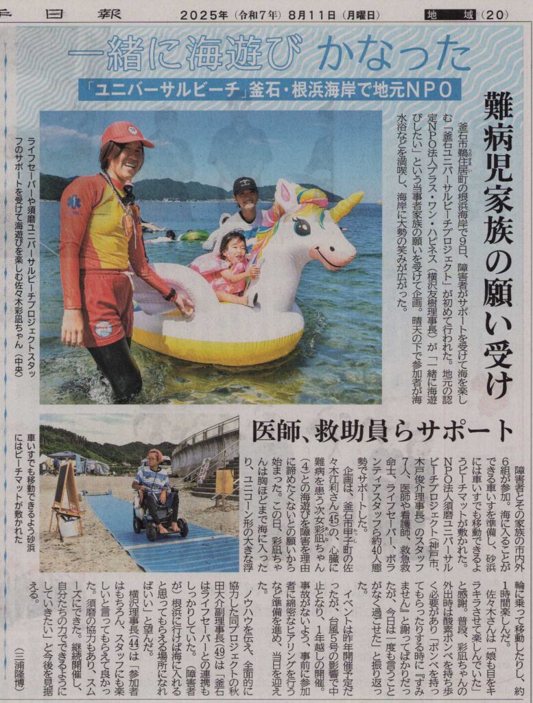 根浜を「ユニバーサルビーチ」に 障害児(者)の海水浴サポート 「やりたい」をかなえる一歩 釜石で発進