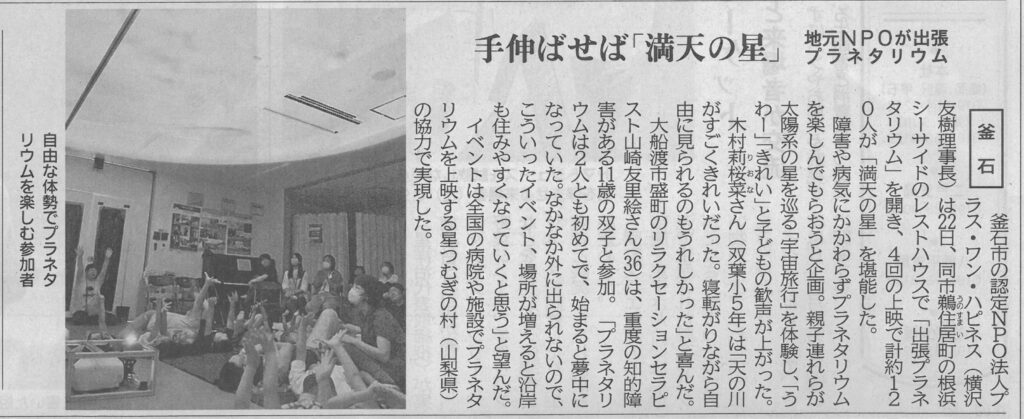 (2025年出張プラネタリウムの模様。釜石根浜レストハウスにて。)