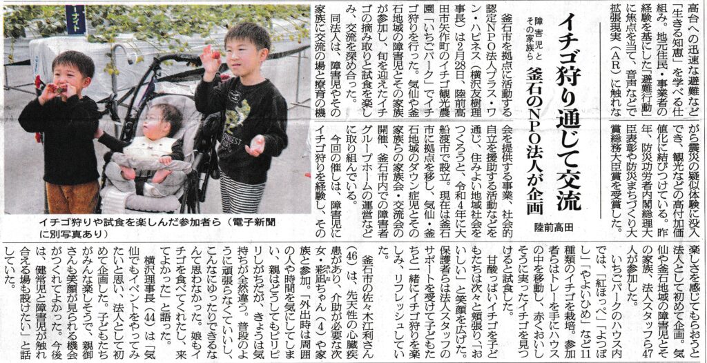 イチゴ狩り通じて交流