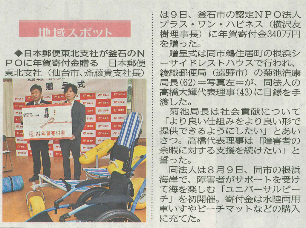 障害児のプール着替えの助けに NPOプラスワンハピネス釜石市に寄付 ふるさと納税活用