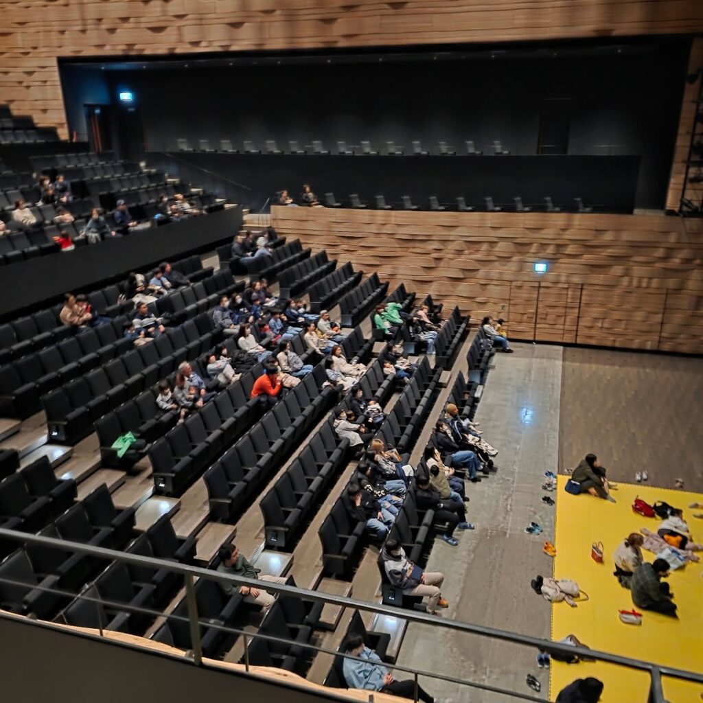 半照明でも、全く問題なく見られましたし、鳴き声や騒ぎ声は聞こえてきましたが、映画自体の音量が大きいので、台詞が聞こえないってこともありませんでした。