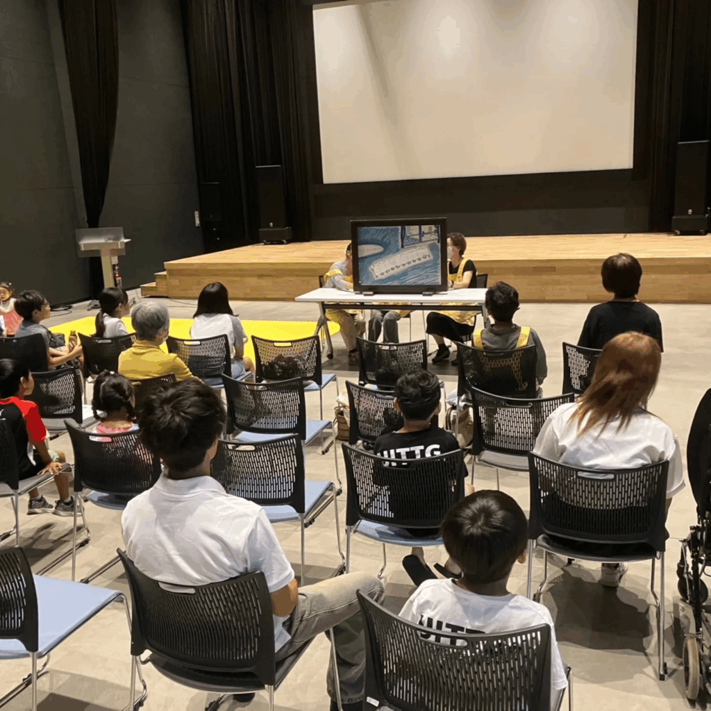 50名以上の参加あり、上映までの待ち時間には紙芝居の読み聞かせも実施。